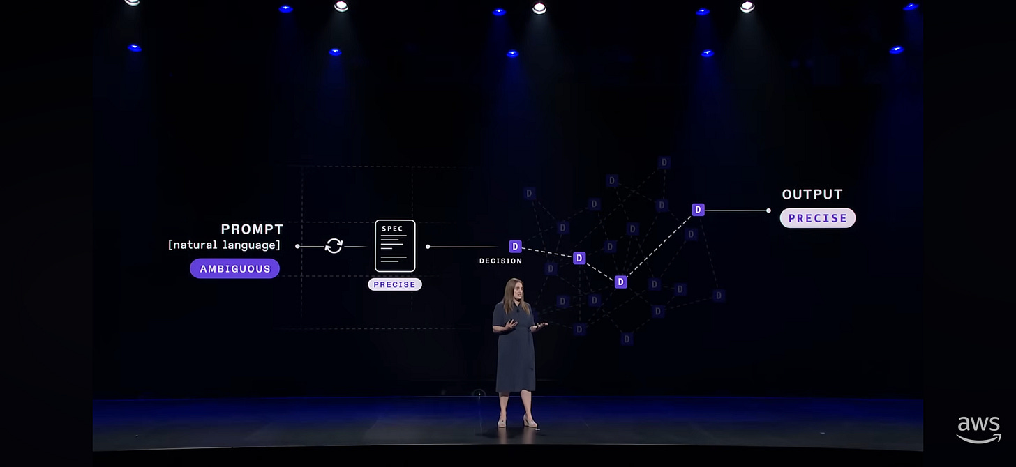 One of the most interesting parts of the keynote was the focus on structured intermediate steps. The Kiro standard specs: requirements, designs, and tasks.